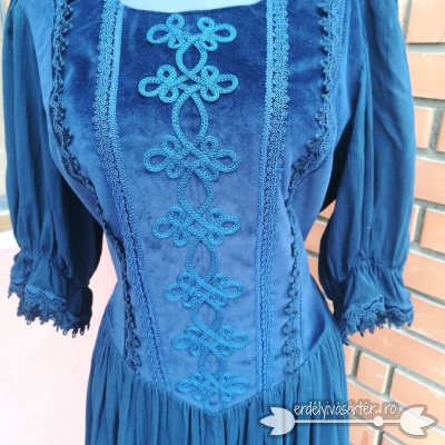 Anyaga: sötétkék géz és bársony