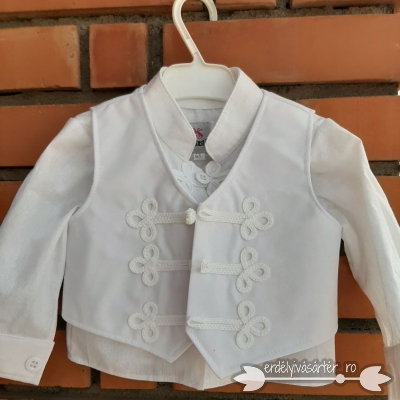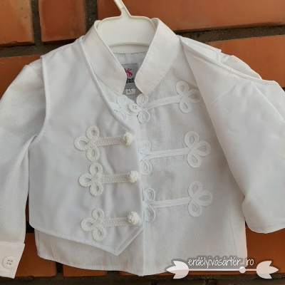 Keresztelő méretű zsinóros kis nadrág, mellény és ing