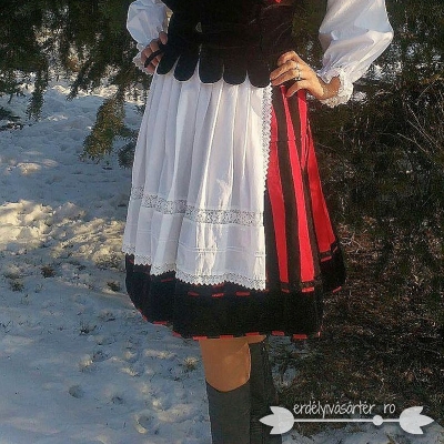 Alcsíki népviselet - Fekete bársonymellényes női székely ruha