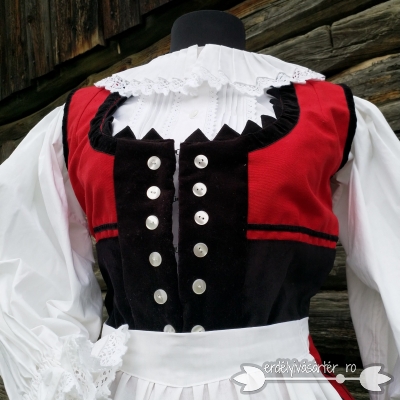 Öt darabból áll: szőttes szokny és mellény, sifonkötény, ing és alsószoknya.