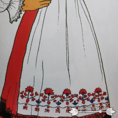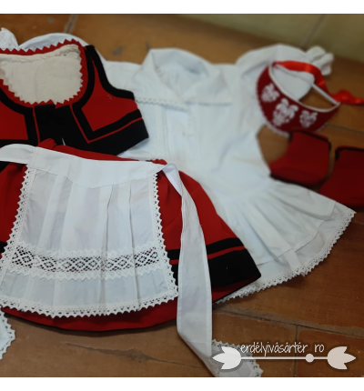 Öt darabból áll: szőttes szoknya és mellény, sifonkötény, ing és alsószoknya.