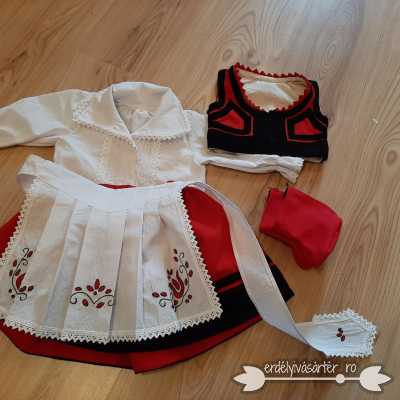 Tartalmazza a kötény, alsószoknyát inggel, szoknyát és mellényt!