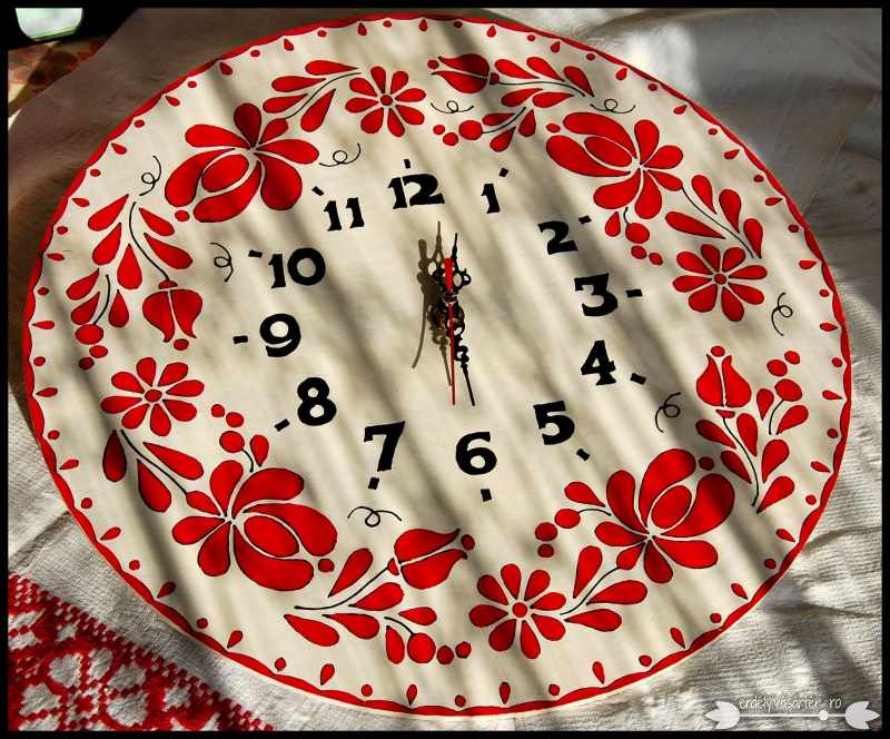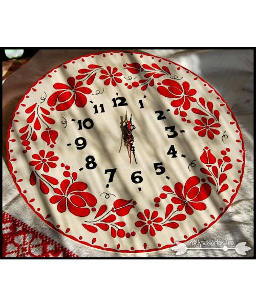 Juharfából készült faragott és színezett falióra