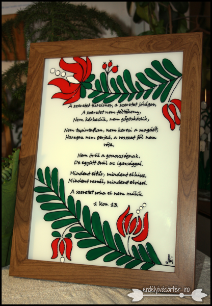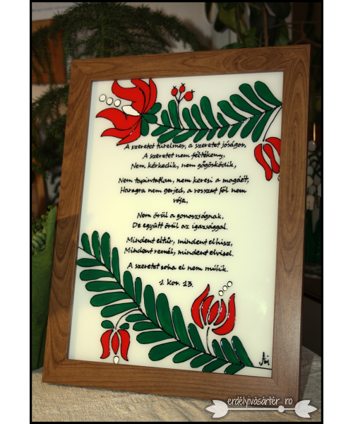 A szeretet türelmes, a szeretet jóságos - Kézzel festett keretes falidísz