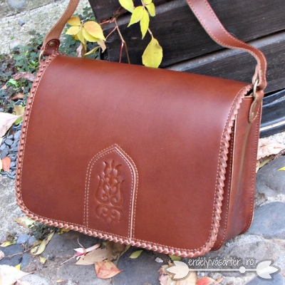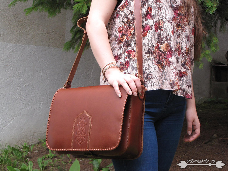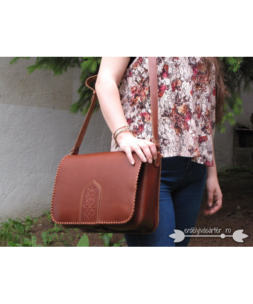 Mintás és fűzött fedelű bőrtáska