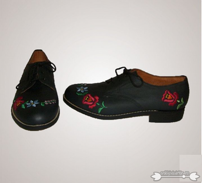 Karaktercipő, csatos, havasi gyopár hímzéssel