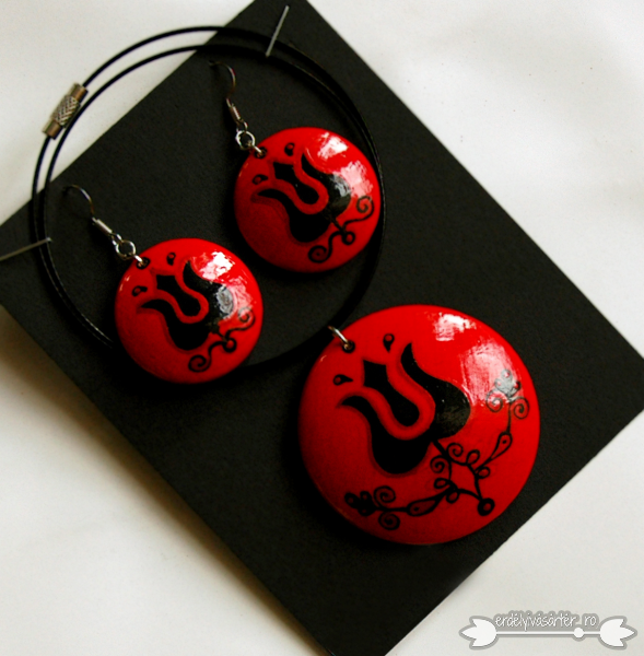 Az ékszerek fa alapra készülnek és vízálló festekekkel vannak megfestve. Fényét a lakkozás adja.
