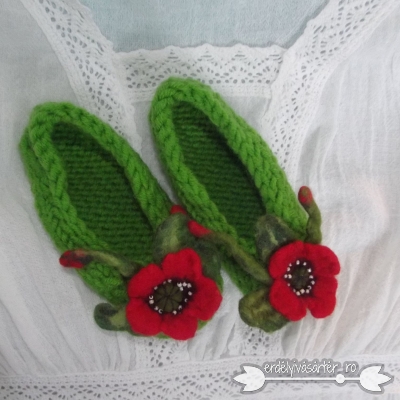 Horgolt gyerekpapucs nemezdíszítéssel