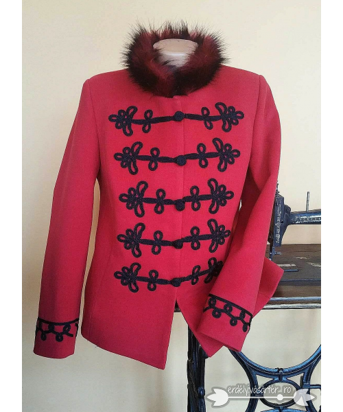 Zsinóros női piros-fekete kabát