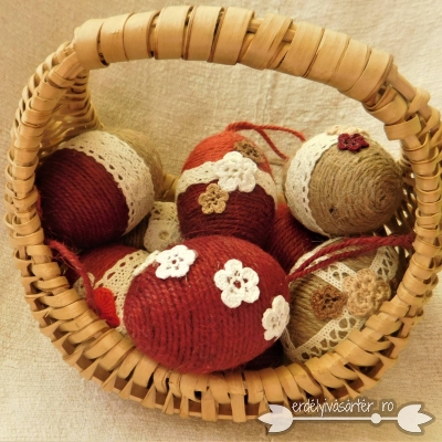 Húsvéti tojás - fatojás színes spárgával bevonva, népiesen díszítve