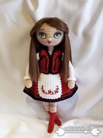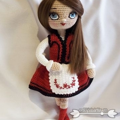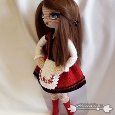 Horgolt székely lány udvarhelyszéki ruhában